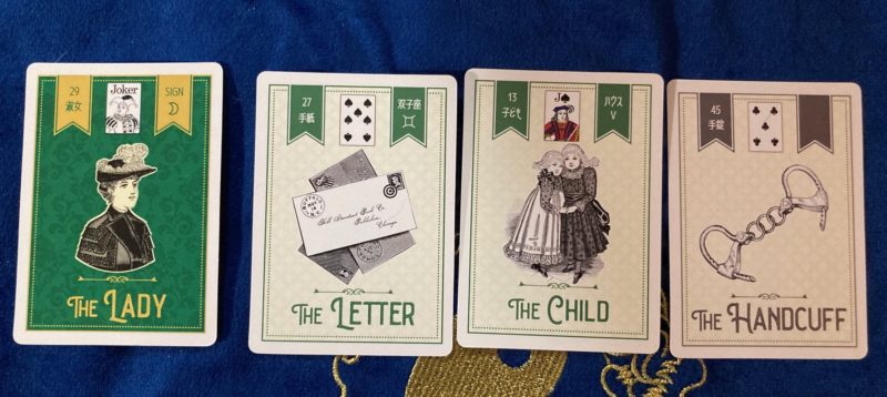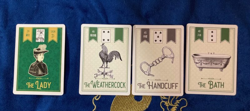 *ちなみに、今回は通常の36枚のほかにオリジナルカードが18枚もはいっている、エレメンツ・ルノルマンカードを使っています。